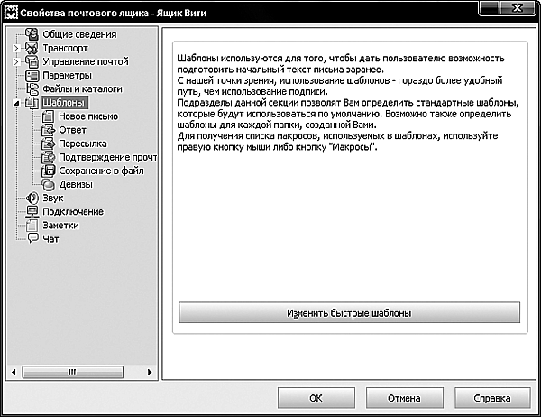 Рис. 2.75. Диалоговое окно настроек почтового ящика, раздел Шаблоны