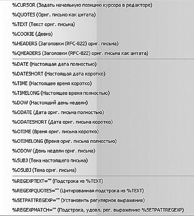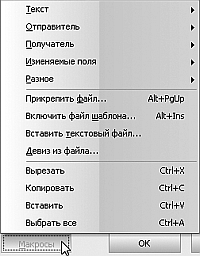 И наконец, мы подошли к самой интересной кнопке Макросы. Именно она отвечает за генерацию самых разнообразных статистических полей в шаблонах, начиная от даты и времени и заканчивая версией Windows (это то, что вы видите на рис. 2.76, слова на английском языке после знака процента). Воспользоваться ими очень просто.
