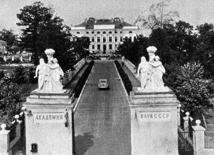Въезд в Президиум Академии наук СССР. Слева виден небольшой сектор нашего двора дома № 16 по Большой Калужской улице (теперь Ленинском проспект). Послевоенное фото.