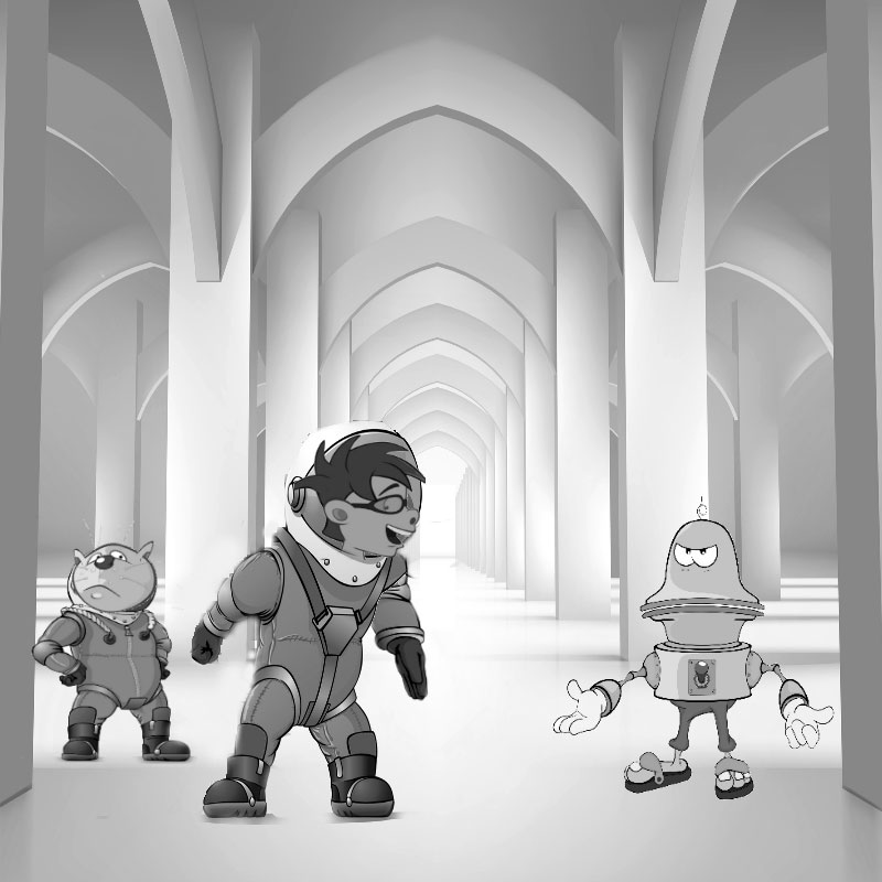 Через час их разбудил грохот каменных дверей. В коморку вошли двое роботов и грубо вытолкали Флинта и Колю в коридор. Их повели обратно в тот же зал. Там на троне уже восседал Квадратус и задумчиво вертел в руке свой посох.