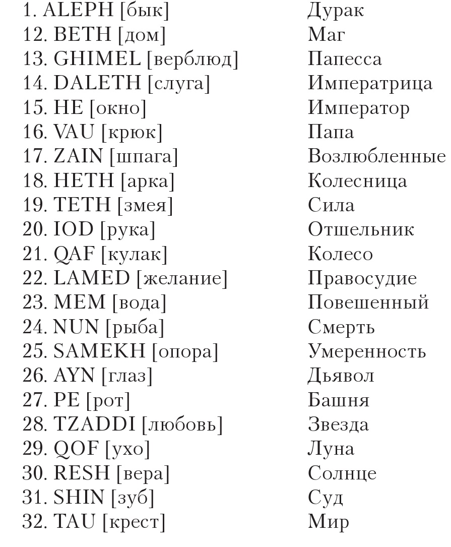 Соотношения между буквами-путями и Арканами Таро были такими: 1. ALEPH [бык]
