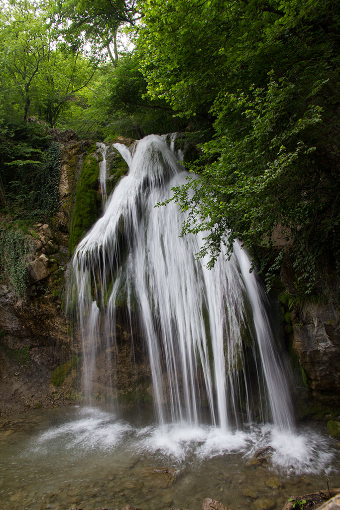 Величина выдержки имеет большое значение для передачи на снимке воды. Если выдержка короткая, то вода напоминает замерзшие «стекляшки». Когда вы установите слишком длинную выдержку, то смазанность создаст впечатление отсутствия резкости. Для съёмки медленного ручья или реки полезны выдержки от 1/30 до 1/125 с. При более ветреной погоде, когда на море волны с «барашками», используются выдержки от 1/125 до 1/250 с. Стремительные горные речки или разбивающиеся о скалы волны желательно снимать на более короткой выдержке – порядка 1/1000 с. Она позволит хорошо проработать мелкие брызги. Если при этом вы удачно направите камеру, брызги будут играть солнечными бликами. При съёмке фонтанов, водопадов предпочтительна длинная выдержка – она позволит передать на снимке движение воды.