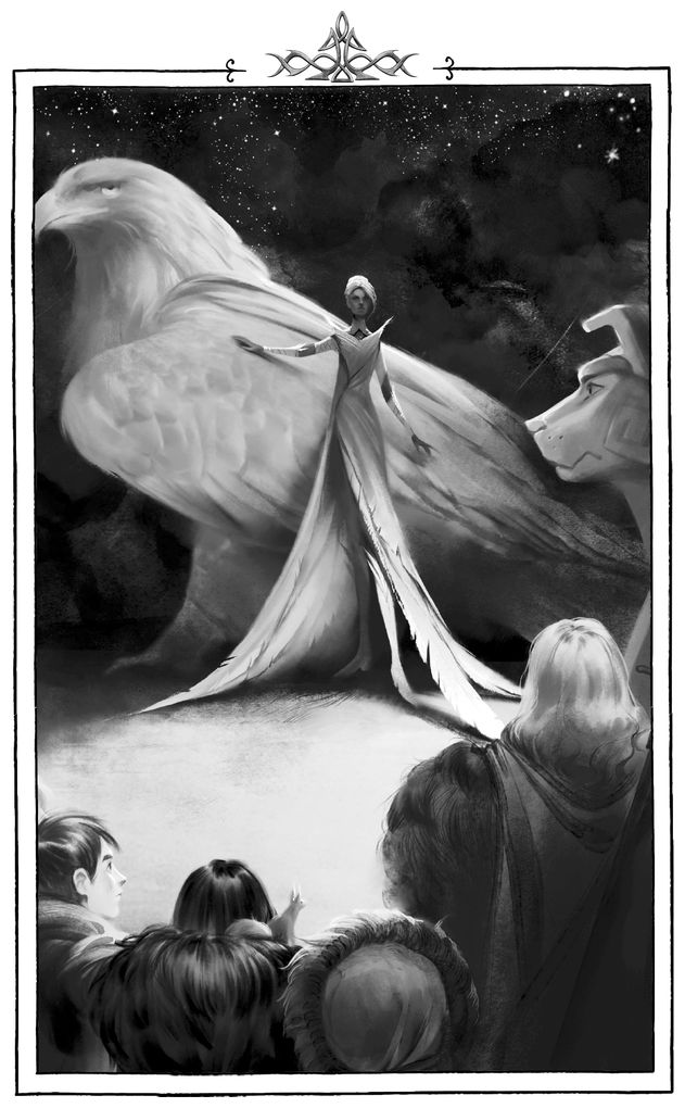 Гигантская птица с ослепительно-белым оперением, мерцающим в свете луны, в последнюю секунду вышла из пике и плавно опустилась на землю. С ее спины соскользнула женщина и, гордо вздернув подбородок, направилась к Охотникам. Она была высокой, а волосы, закрученные на макушке, прибавляли ей роста. Ее лицо было угловатым, острые скулы выделялись под смуглой кожей. С плеч ниспадал длинный плащ, сотканный из таких же белоснежных перьев, как у ее орла.