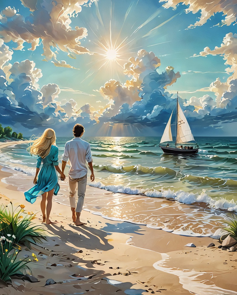 Мы шли босиком по теплому белому песку вдоль берега моря, ветер раздувал волосы, из приемника неслась нравившаяся мне тогда песня “Words don’t come easy”[28]. Морской воздух щекотал ноздри, ослепительное ярко-голубое небо, белые кучевые облака проносились над головой.