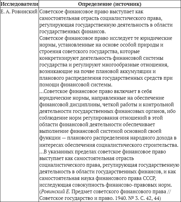 Необходимо учитывать, что финансовая система является достаточно дискуссионной правовой и экономической категорией. Необходимо напомнить, что вопрос о соотношении собственно правового и экономического в сфере учения о финансах и в дореволюционный, и в советский период носил дискуссионный характер. При этом показательно, что соглашаясь и с подходом Е. А. Ровинского (что «наука финансового права не может в своем исследовании отвлечься от экономического содержания регулируемых финансовым правом общественных отношений»[92]), и с реверсной позицией Н. Н. Ровинского (что «финансовая наука не может обойти те юридические нормы, которые регулируют эти отношения»[93]), тем не менее, например, С. Д. Цыпкин писал: «Не могут вызывать возражений в принципе и утверждения о том, что наука финансового права не должна при этом превращаться в “экономико-правовую науку”, что она должна пользоваться готовыми экономическими положениями, разрабатываемыми наукой о финансах. Нужно лишь заметить, что иногда (и не так уж редко) таких “готовых”, сколько-нибудь устоявшихся положений нет и возникает необходимость выбора того или иного решения, оценки его обоснованности»[94].