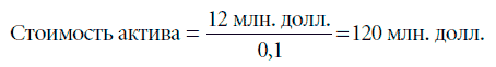 Модели совокупных денежных потоков и модели избыточных денежных потоков. Стандартная модель дисконтированных денежных потоков оценивает актив посредством оценки приведенной стоимости всех денежных потоков, создаваемых данным активом, по соответствующей дисконтной ставке. В моделях избыточных доходов (и избыточных денежных потоков) только денежные поступления, заработанные сверх необходимых доходов, рассматриваются как создающие стоимость, и текущую стоимость этих избыточных денежных потоков можно прибавлять к сумме, инвестируемой в актив, для оценки его стоимости. Для иллюстрации сказанного предположим: у нас есть актив, в который мы инвестировали 100 млн. долл., и мы ожидаем в бесконечной перспективе получить 12 млн. долл. после уплаты налогов. Далее предположим, что стоимость привлечения капитала на эту инвестицию составляет 10 %. Согласно модели совокупных денежных потоков, стоимость данного актива может быть оценена следующим образом: