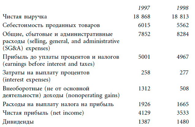 Отчеты о прибылях и убытках компании Coca-Cola за 1997 и 1998 гг.: