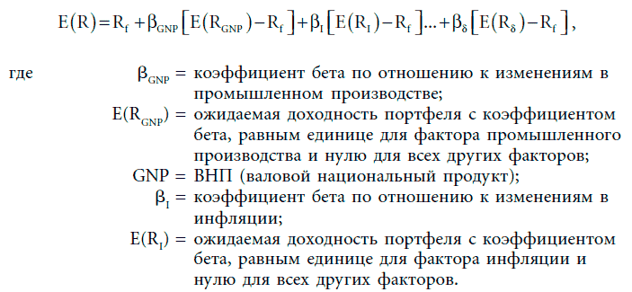 Элементы в квадратных скобках можно рассматривать как премии за риск каждого фактора в модели.