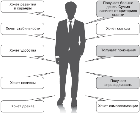 • хорошо выполненная работа приводит к повышению зарплаты, карьерному росту, свободному графику, абонементу в фитнес-клуб, путешествию в Прагу и билетам на футбол. Дело в том, что критерии оценки привязаны не только к целям и задачам конкретного сотрудника, но и к переменной части зарплаты, а также к нематериальным мотивационным стимулам.
