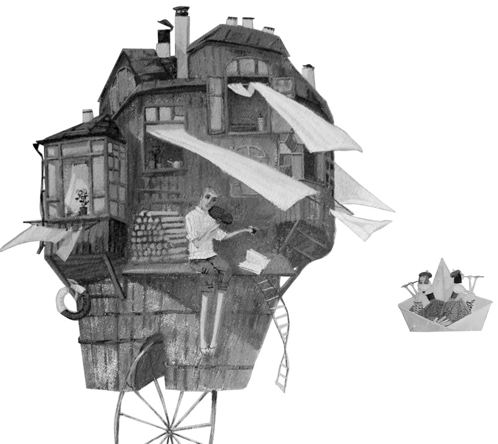 Впрочем, каждое появление плавающего дома неизменно вызывало в душах у оседлых звук, похожий на разъезжающееся между тревогой и радостью вибрато скрипки-восьмушки, на которой трёхлетний ребёнок только-только приступил к тренировке различных способов звукоизвлечения. При виде настоящего плавающего дома люди останавливались, даже если ещё мгновение назад спешили по делам чрезвычайной важности. ими вдруг овладевали странные эмоции, они чувствовали себя обманутыми, им казалось, что существование у засеянного поля, на краю которого вкопана в землю их собственность – это ловушка, чьи стены выстроены из обстоятельств уже непреодолимой силы. и что где-то вне этих стен бьётся разноликая, полноводная и вешняя – другая, реальная жизнь…