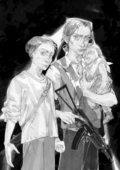Вали проверяет автомат. Я все-таки приматываю Фенрира к себе, проложив между обмоткой и ребенком наш единственный бронежилет. Малыш спрятан в пуленепробиваемой ракушке, одни ноги свисают.