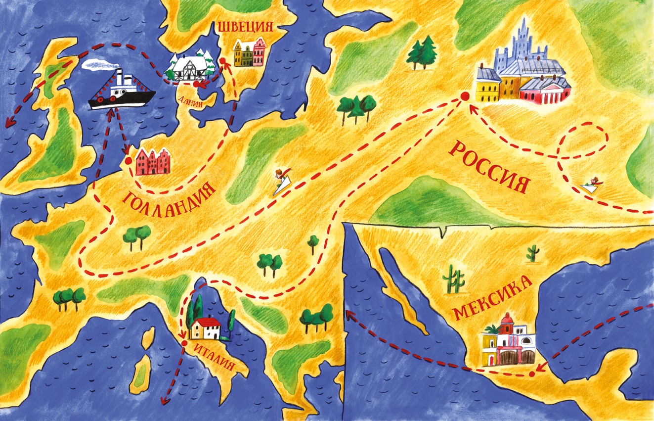 И вот однажды утром Вилли набрался смелости, взял папину карту мира, сел в самолет и отправился на поиски Деда Мороза.
