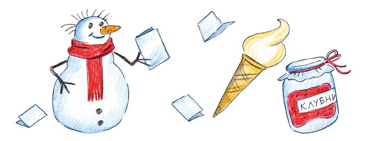Однажды, когда Валерка заболел и дулся, что ему приходится сидеть дома, он обнаружил в руках у снеговика маленькую записку. Там было сказано, что до Нового года осталось всего две недели и нужно скорее готовиться к празднику! Каждый день снеговичок приносил записки с новыми заданиями: сходить на каток, посмотреть новогодний мультфильм, найти и съесть самое холодное мороженое. Валерка к тому времени как раз уже выздоровел, и мороженое пришлось очень кстати. Чтобы снеговику не было обидно, он слепил ему мороженое из снега – целых три шарика. В благодарность снеговичок подарил Валерке книжку про Петсона и Финдуса. Они с мамой читали ее каждый день и гадали, успеет ли Петсон смастерить механического Деда Мороза.