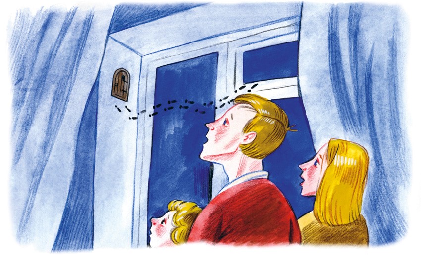Мама подошла ближе и заметила за шторой на стене небольшую коричневую дверцу с круглой ручкой и маленьким глазком. Следы начинались прямо от нее и шли через все окно к форточке.