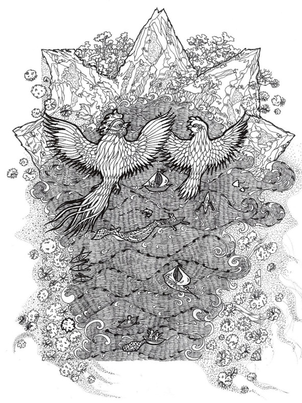 When their chicks were born, they all turned into a new bird species, able to fly and swim. They were beautiful, with their feathers that shined like a sun and had a tint of emerald, ocean-like color. Their lives were full of interesting challenges and adventures, with many good stories.