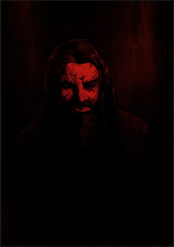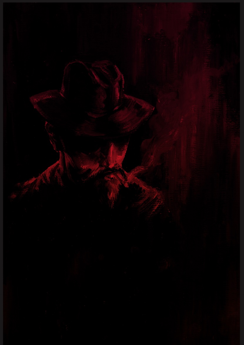 И только сейчас, отдышавшись, он мог рассмотреть человека. Его очень острые скулы, смотрелись слегка нечеловечно в свете костра, а в глазах мелькал диковатый огонек. Шляпа с широкими краями почти полностью закрывала его взгляд. Одет он был слишком шикарно для здешних мест: темно-бордовый жилет, поверх черной рубахи, которая сидела на нем как влитая, роскошные лакированные туфли с металлическим острым концом. Аккуратная небольшая бородка и ровные усы с завитками на концах – все это выдавало в нем зажиточного человека, пришедшего издалека. Но как он совершил такой путь и даже не запылил свои туфли?