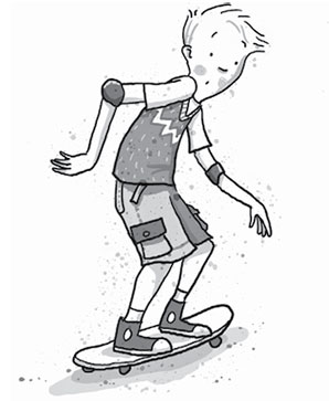 Бенни так перепугался, что не сразу выкарабкался из кустов обратно на улицу. Не теряя ни секунды, он запрыгнул на скейт и помчался домой.