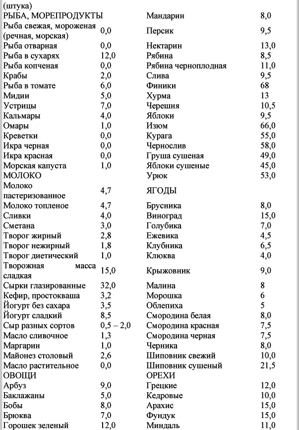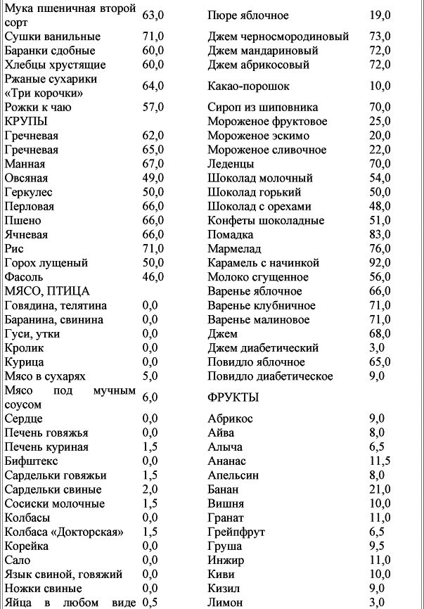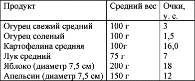 А теперь давайте подсчитаем очки индивидуально на примере двухнедельного меню. Садясь на кремлевскую диету, нельзя исключать из своего рациона овощи, фрукты и ягоды. Не стоит также забывать изредка употреблять в пищу хлеб и крупы. Вводите эти продукты в свое меню, руководствуясь данными таблицы: