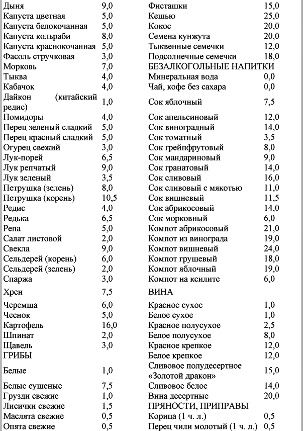 Сидеть на кремлевской диете вовсе не означает, что, получая определенное количество углеводов каждый день, человек не получает необходимые витамины и полезные вещества. Если присмотреться получше, то можно с уверенностью заявить, что такое питание содержит достаточное количество полезных веществ. Главное опять-таки заключается в том, чтобы правильно сбалансировать свой дневной рацион без вреда здоровью и получить при этом необходимую порцию витаминов. Давайте еще раз заглянем в нашу таблицу условных единиц и выберем продукты, которые наиболее уместны как для похудения, так и с точки зрения получаемых от них полезных веществ.