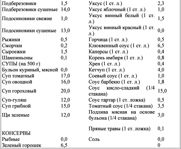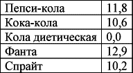 Стоимость сильногазированных напитков также можно подсчитать в таблице условных единиц (100 г).