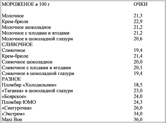 Для любителей сладостей приводим ниже таблицу содержания углеводов в мороженом.
