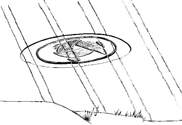 Если совместить все снимки друг с другом, то получится впечатляющая картина. Пространственные закономерности этих следов позволяют предположить, что мы имеем дело с неким информационным полем, элементы которого – линии – задают смещения модуля, позволяющие вычислить весьма точные координаты какой-то условной точки. В ней, этой точке, лежащей в 6 км к северу и в 39 км к востоку от информационного поля, был обнаружен еще один знак, удивительно четкий и рельефный.