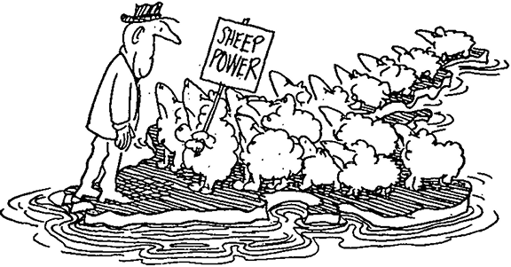 The population is maintained at a rough balance of one man equivalent to twenty-three ewe equivalents, or people to sheep—but then what’s in a name, as Engelbert Humperdinck would say. This balance makes the humans better off, with the average bloke earning $2,235 at the 1966 census, the average sheep only $6. Unfortunately it upsets a combined chorus of politicians and sex maniacs who want the people to catch up on the sheep by populating or perishing, conveniently forgetting that the strain of reaching the first ten million could produce both eventualities. Yet a population of only three million, scattered over 104,000 square miles, is responsible for most of the national characteristics. God who made them tiny, make them tinier yet.