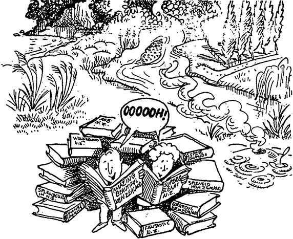 Similarly you would never be able to wade through the books about New Zealand. Production of books about the country is the major local industry, after plastic tikis. Books about New Zealand In Colour provided the original impetus for the Japanese economic miracle. New Zealand presses pour out books on New Zealand, if they aren’t lucky enough to get the Labour Party raffle ticket account. To mention New Zealand in a book title is a guarantee of massive sales.