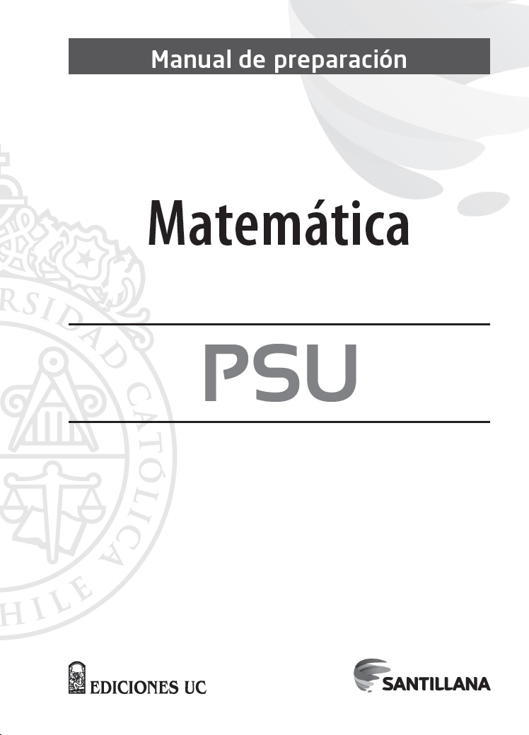 La colección de Manuales de preparación PSU elaborada por Editorial Santillana y Ediciones UC tiene como objetivo ser un apoyo eficiente y práctico para el postulante que prepara la Prueba de Selección Universitaria. Cada manual aborda los contenidos de los temarios correspondientes a la respectiva área (Lenguaje y Comunicación, Matemática, Ciencias e Historia, Geografía y Ciencias Sociales) y profundiza en la comprensión y aplicación de las habilidades exigidas por el Marco Curricular vigente.