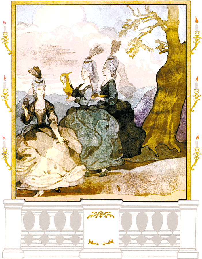 Не успел он это сказать, как вновь появились три феи. Одна держала кувшин с водой, другая – камень, а третья – большущий висячий замок.