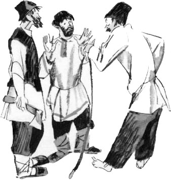 Рано утром в сарай, где просыпались ото сна плотники, прибежал дворовый сторож и сказал, что сегодня их ожидает барский суд.