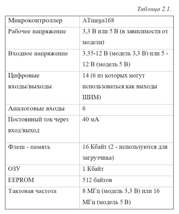 The characteristics of the Arduino Pro Mini board are presented in Table 2.1.