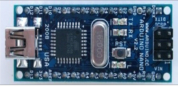 The Nano platform (Fig. 2.2), built on the ATmega328 microcontroller (Arduino Nano 3.0) or ATmega168 (Arduino Nano 2.x), is small in size and can be used in laboratory work.