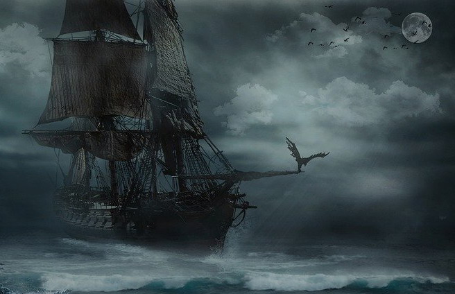 Он стал взывать к небу и ветру, и вскоре небо заволоклось тучами. Тем временем пиратский корабль стремительно приближался. Уже можно было различить черный флаг с черепом на мачте и фигуры орущих матросов на палубе.