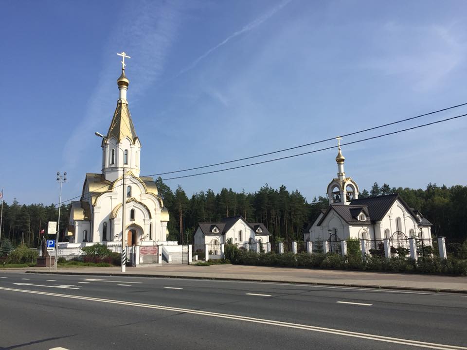 Проехали Катынский мемориал, прямо… с левой стороны дороги.