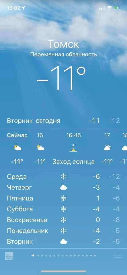 Скриншот сделан в приложении Яндекс.Погода.