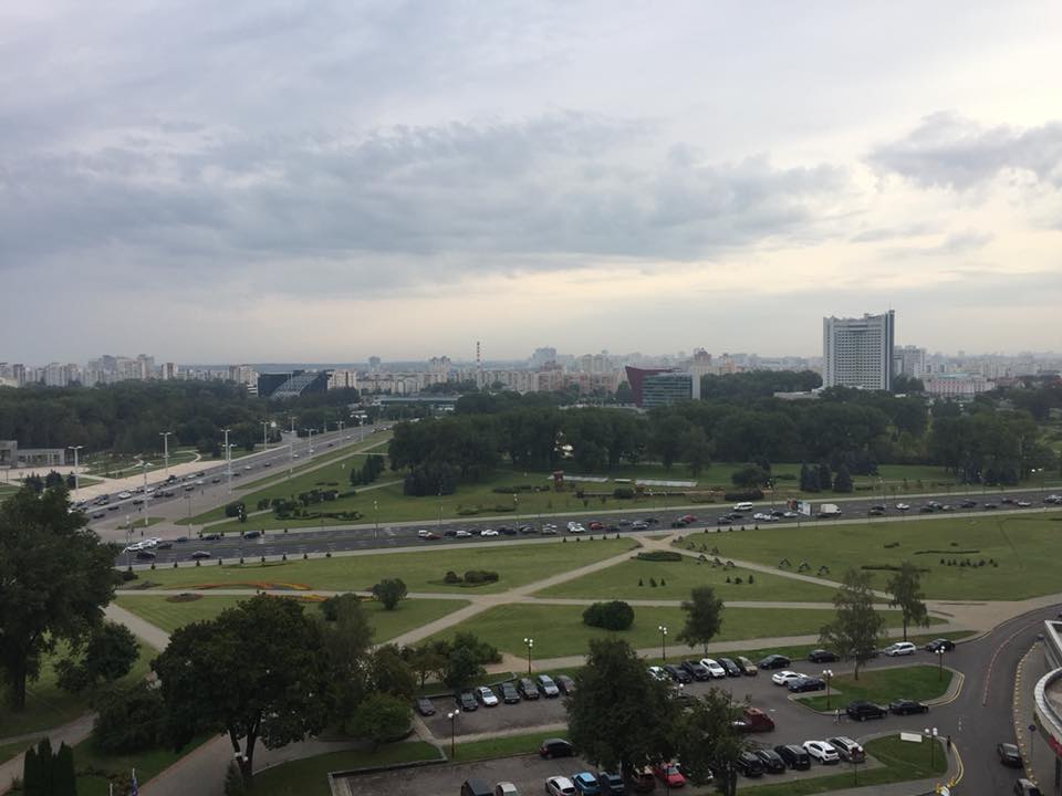 Из окна самого номера открывается шикарный вид на пересечение двух проспектов: Победителей и Машерова, на сквер «Старостинская слобода», на рвущуюся если не в космос, то в облака высотку-гостиницу «Беларусь». Коли память мне не изменяет, где-то там же – казино, аквапарк и смотровая площадка, на которой я прежде обозревал Минск.