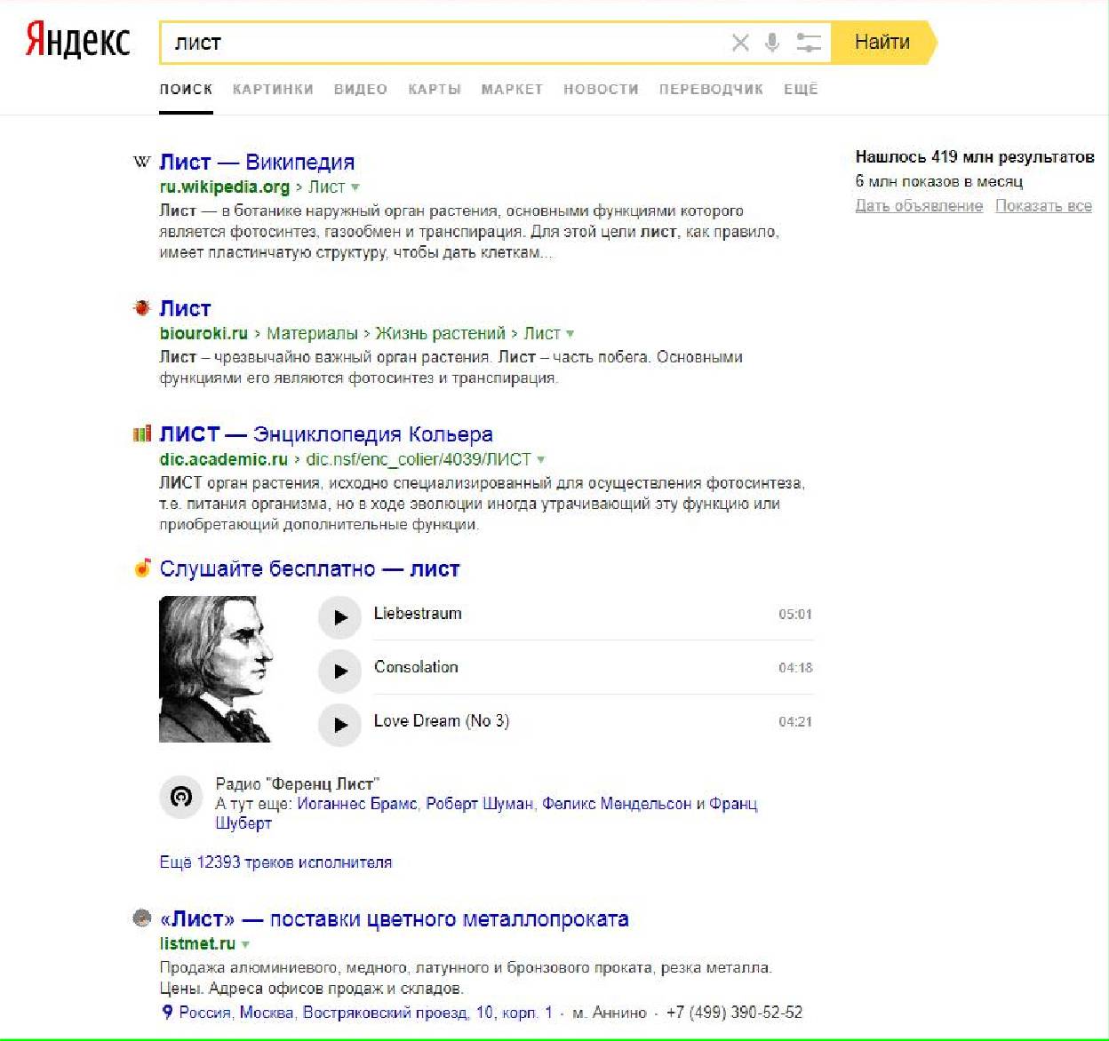 Значит, если вы любите фильмы и часто ищите их в поиске, то в вашем случае, если вы будете набирать запрос «лист», то поисковик вам будет показывать кино сайты, которые содержат в себе фильм «лист». А если вы любите чай, то поисковик покажет интернет магазины с товарами, в которых есть слово «лист» или информацию про «чайный лист». В том случае, если вы ценитель музыки, то музыкальные сайты, которые содержат песню группы «Лист» или информацию про них будут вам предложены в ответ на такой запрос.