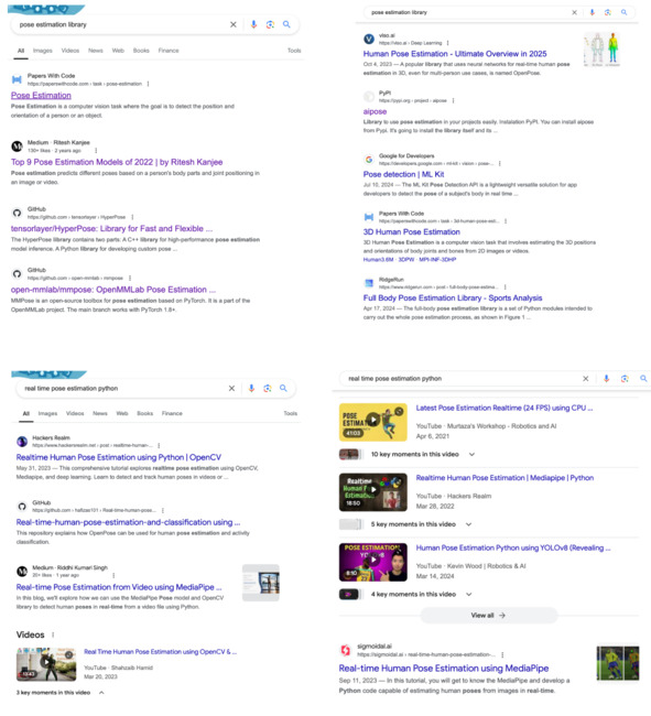 Let’s see what pops up when we Google1 “pose estimation library” and “real time pose estimation python”: