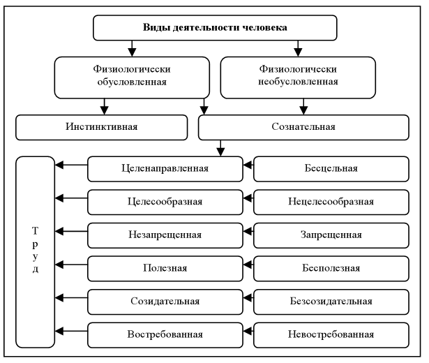 Труд – вид деятельности, но не всякая деятельность является трудом. Деятельность людей характеризуется составом и структурой составляющих ее разновидностей. Виды деятельности человека показаны на рис. 3.