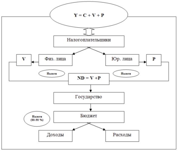 Примечание: Y – валовой внутренний продукт; ND – национальный доход; С – овеществленные издержки производства; V – оплата труда или личный доход; P – прибыль хозяйствующих субъектов.