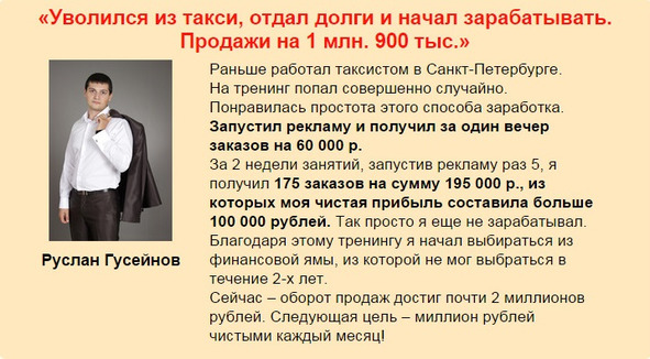 – Мы научили десятки тысяч людей профессионально продавать свои товары при помощи маркетинга прямого отклика, используя социальные сети, тизерную или таргетированную рекламу.