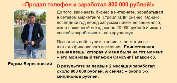 Сейчас, оглядываясь на прошлое, я понимаю, что это было ключевой точкой, почему я начал заниматься бизнесом в интернете. Если бы тогда у меня не было первых результатов, возможно, я бы сдался. Но у меня получилось!