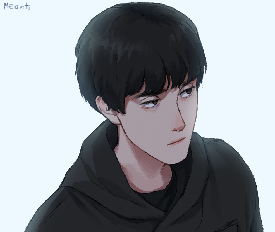 Парень, в отличие от жнеца, был в обуви – простых черных туфлях с прямоугольным носком. Без носков под ними, что было видно из-за не доходящих до ступней штанин. Брюки тоже разнили его с роботами – они были темнее и чище тех лохмотьев, которые покрывали механические ноги едва больше, чем на половину. Его одежда не имела заметных рванных краев или разрывов. Только зашитые полосы на рукавах кофты. И не было тех крупных колец на бегунках, отчего парень был так тих. Нашивка на груди – «А-210-077». Руки свободно свисали вдоль тела, ладони темнее лица. В области бедер выделяющееся расширение, всего несколько лишних сантиметров, не выглядящие правильно. Как и челка, напоминающаяся раму, стриженная ровной линией на два пальца толщины выше глаз.
