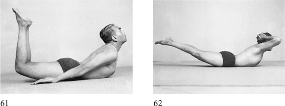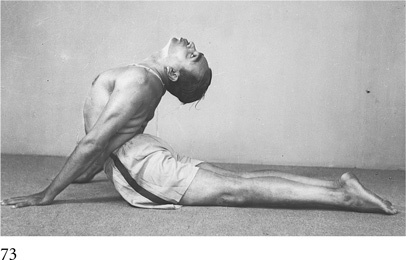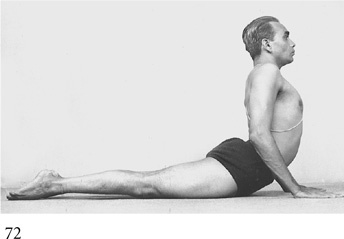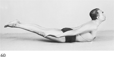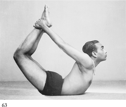 ЭффектВ асане позвоночник вытягивается назад, что полезно для пожилых людей, поскольку с возрастом позвоночник утрачивает гибкость. Мой опыт свидетельствует, что Дханурасана, так же как и Шалабхасана (фото 60), идеальна при смещении межпозвонковых дисков: ученики, регулярно практиковавшие ее, избавлялись от проблемы без всякого лечения. Поза также повышает активность органов брюшной полости.