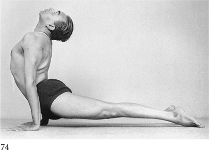4. Отведите голову и корпус как можно дальше назад. Не опускайте колени на пол. Подтяните колени и полностью выпрямите ноги. Вес тела приходится исключительно на ладони и пальцы ног (фото 74).