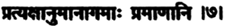 Correct knowledge is based on three kinds of proof: direct perception, correct inference or deduction, and testimony from authoritative sacred scriptures or experienced persons.