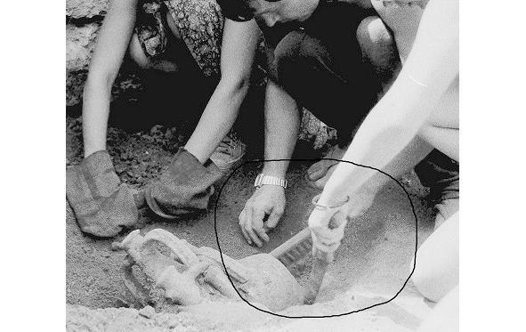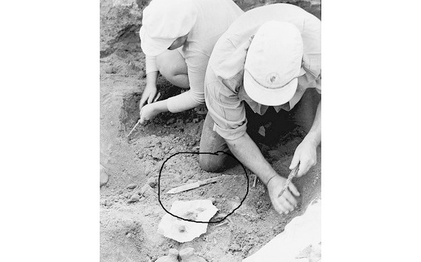 XIV Археологи ведут расчистку артефактов с помощью ножей, 1979 (источник – АЧФ)