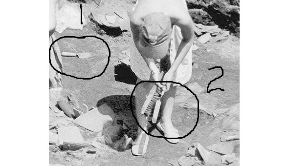 Только на снимках этого тысячелетия видно, что российские археологи частично перешли на западную археологическую кельму (XVI, внизу), но и не отказались от ножей и садовых совков (XXII). Не появились и жестяные мусорные совки (именно это и является одним из оснований для первичной визуальной дифференциации культурной принадлежности снимков на интернете).