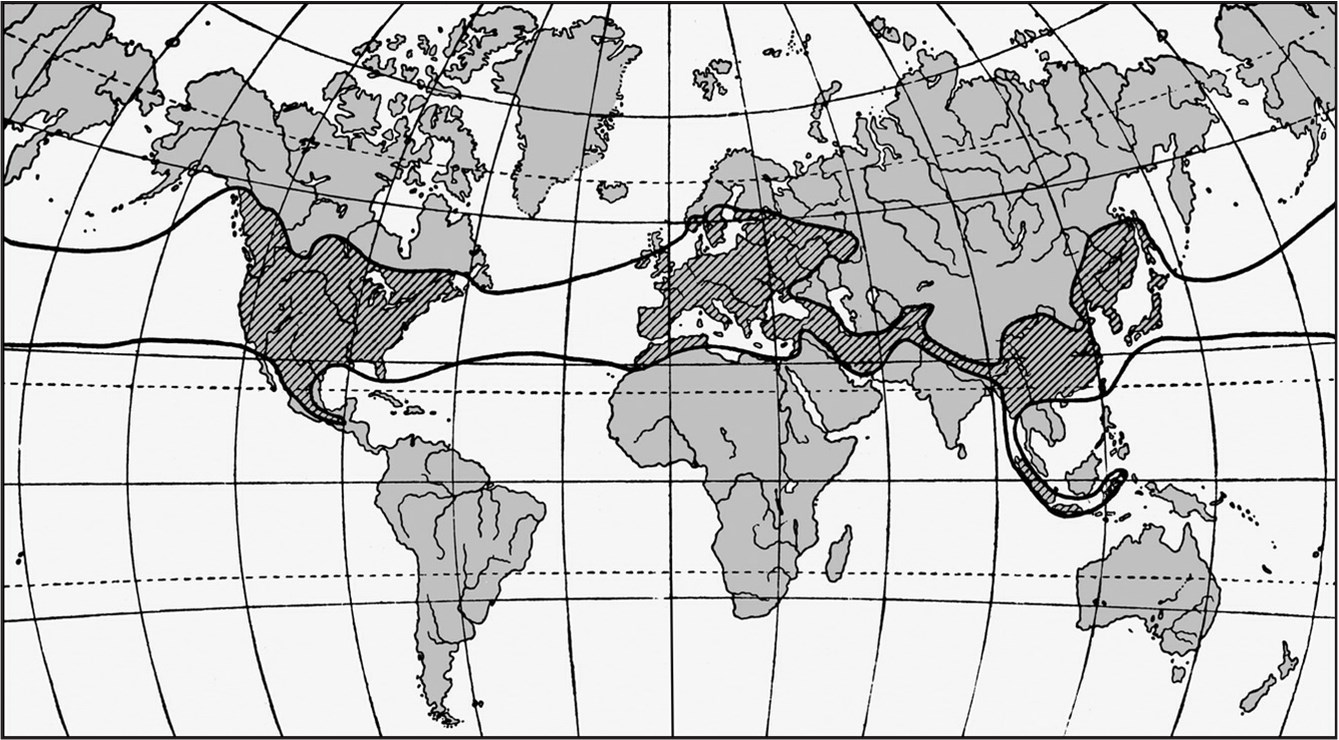 Центром возникновения рода Acer L. считается Восточная Азия, а именно районы современного Приморья и Юго-Восточного Китая, где сосредоточено почти все видовое разнообразие кленов (Пояркова, 1933). В эпоху, предшествующую ледниковому периоду, род был распространен на обширной территории, ископаемые остатки кленов найдены в Гренландии, Исландии, на Чукотке, Шпицбергене, Камчатке, Аляске, Алтае (Кохно, 1982). Современный ареал рода (рис. 1) охватывает умеренную и субтропическую зоны всех континентов северного полушария: всю Северную Америку, за исключением субарктической ее части, большую часть Центральной Америки, всю Европу, за исключением субполярной и полярной ее частей, небольшую часть Северной Африки, Малую и Переднюю Азию, горные системы Памир и Гималаи, Юго-Восточную Азию, включая Индонезийский архипелаг (Пояркова, 1933).